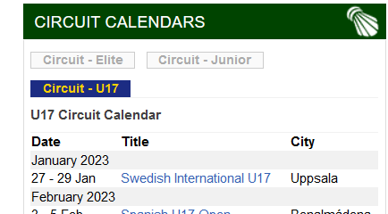 - für U17-Turniere ebenfalls bei badmintoneurope.com gelistet:
