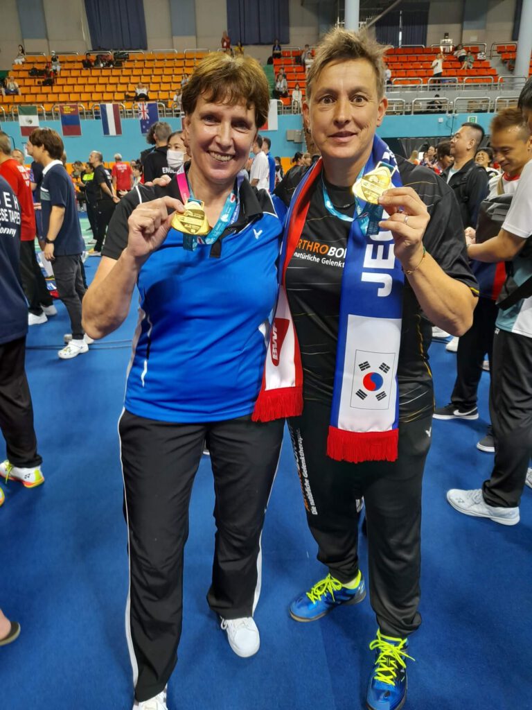 Elke Nijsee-Drews, die ihre Badminton- Karriere beim ESV Weil und beim BC Brombach in Südbaden begonnen hatte, spielte in Jeonju für die Niederlande und wurde mit Tanja Eberl (TSV Neubiberg/Ottobrunn) Vizeweltmeisterin im Doppel der Altersklasse O55.