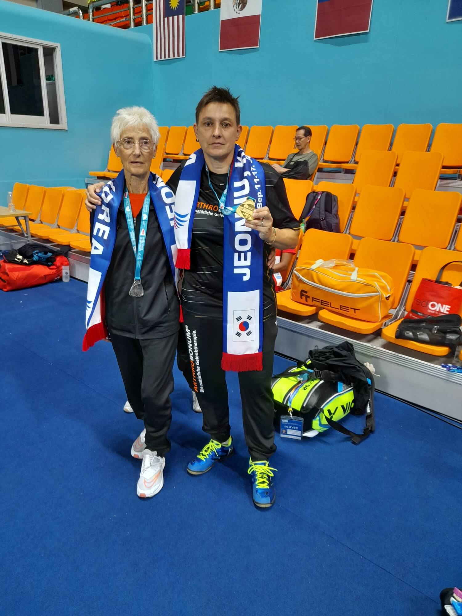 mit Renu Chandrika De Silva Hettiarachchige aus Sri Lanka am 17. September die Goldmedaille im Doppel O45. Als einzige Baden-Württembergerin hatte Claudia zusammen mit Ehemann