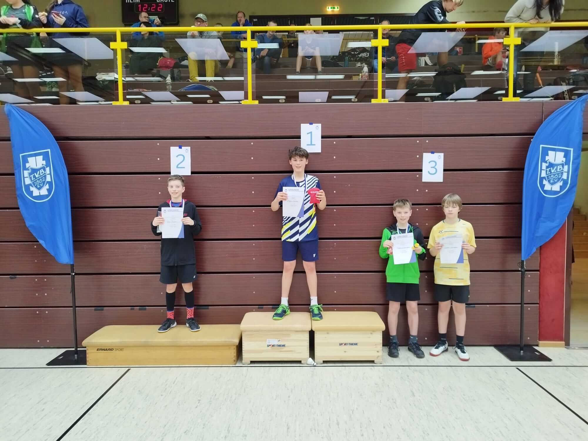 Im Einzel schafften es drei von unseren Jüngsten aus der Gruppenphase raus. Mit unter Aanya Saptharishi vom BSV Eggenstein-Leopoldshafen und Lasse Wolber vom FC Kirnbach. Aanya Saptharishi erreichte im Mädcheneinzel das Viertelfinale. Lasse Wolber kämpfte sich souverän bis ins Finale. Dort war er einem ähnlich starken Gegner ausgesetzt. In vier knappen Sätzen ging es um den Turniersieg. Leider verlor Lasse Wolber am Ende unglücklich mit 9-11 11-9 11-8 11-10.