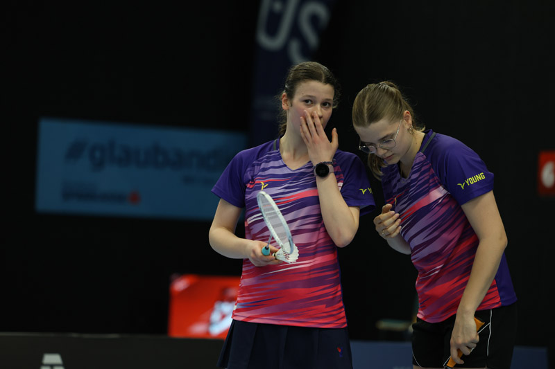 In den Doppeln kam es zu vielen knappen Spiele in der ersten Runde. Am Ende schafften es nur zwei Paarungen weiter. Im Herrendoppel waren es Aditya Gahirwal von der SG Schorndorf und sein Partner Jannes Ernst aus Berlin. Gemeinsam erreichten sie das Achtelfinale. Die beiden lieferten ein starkes Spiel mit langen Ballwechseln. Doch auch hier hatten sie leider im zweiten Satz eine unkonzentrierte Phase, welche ihnen die Chance auf einen Sieg kostete. Bei den Mädchen erreichte Smilla Fluhrer mit ihrer Doppelpartnerin aus Bayern die zweite Runde. Gegen die ehemaligen U15-Europameister traf sie ein hartes Los. Trotzdem konnten die beiden gut mithalten, doch für den Sieg reichte es nicht. Das Spiel ging 21-9, 21-17 an die Rumäninnen.
