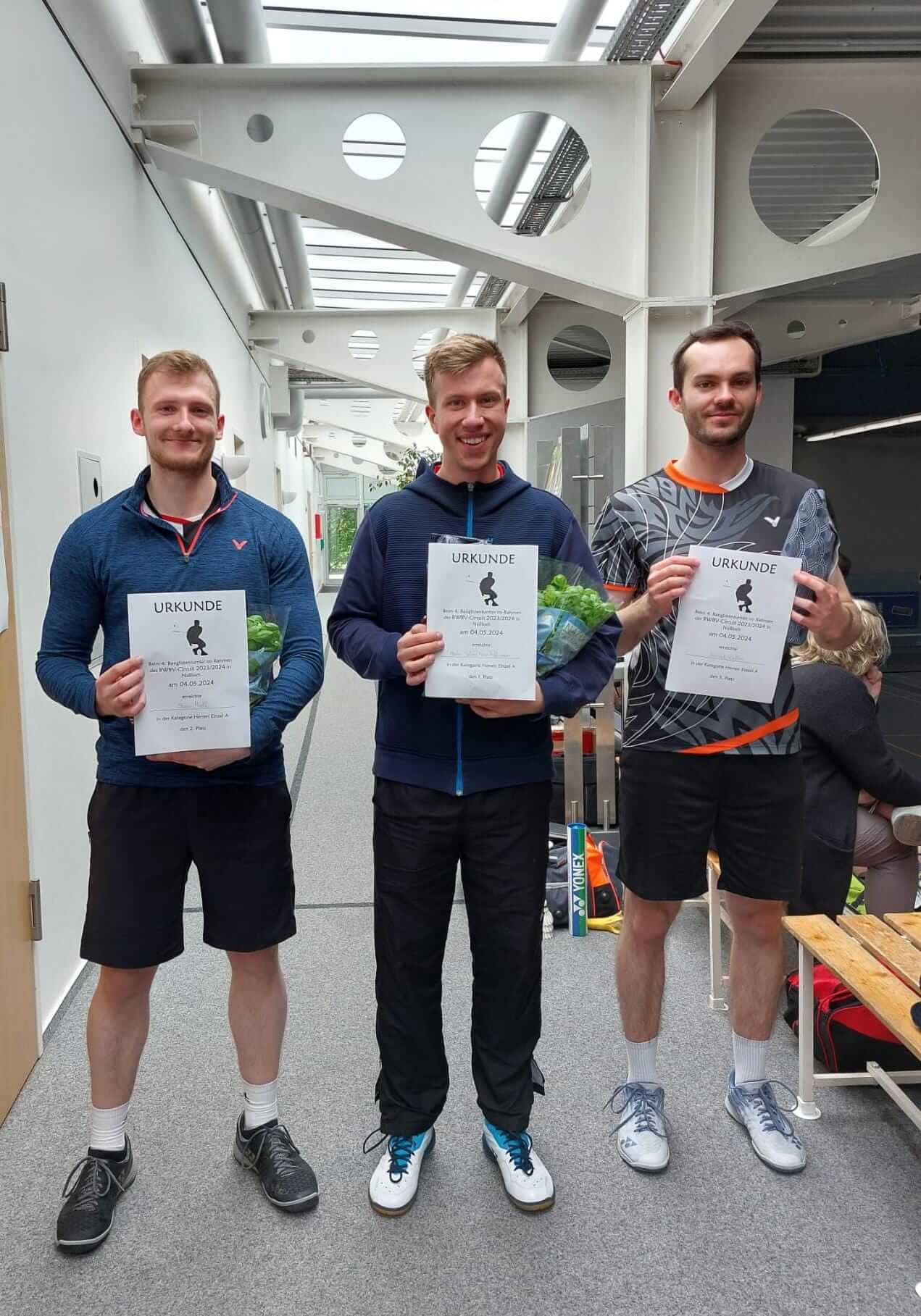 Auch im Herreneinzel B war die TSG Weinheim stark vertreten mit Lukas Gruber auf Platz 1, gefolgt von Kevin Stumpp (SG Walldorf), Tom Minges (TV Neckargemünd) und Simon Braig (ebenfalls TSG Weinheim).