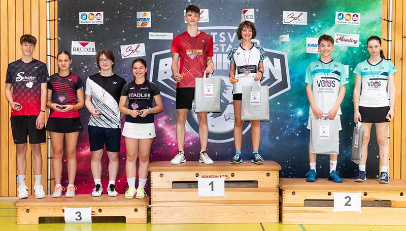 Die Altersklasse U19 zählte die meisten Baden-Württembergischen Podestplätze. Die Dreifachsiegerin Nadja-Christine Reihle (SpVgg.Mössingen) spielte im Doppel mit Ann-Kathrin Graf (SG Schorndorf) und im Mixed mit Alexis Riebschläger (BC Offenburg), der auch noch das JE U19 gewann.
