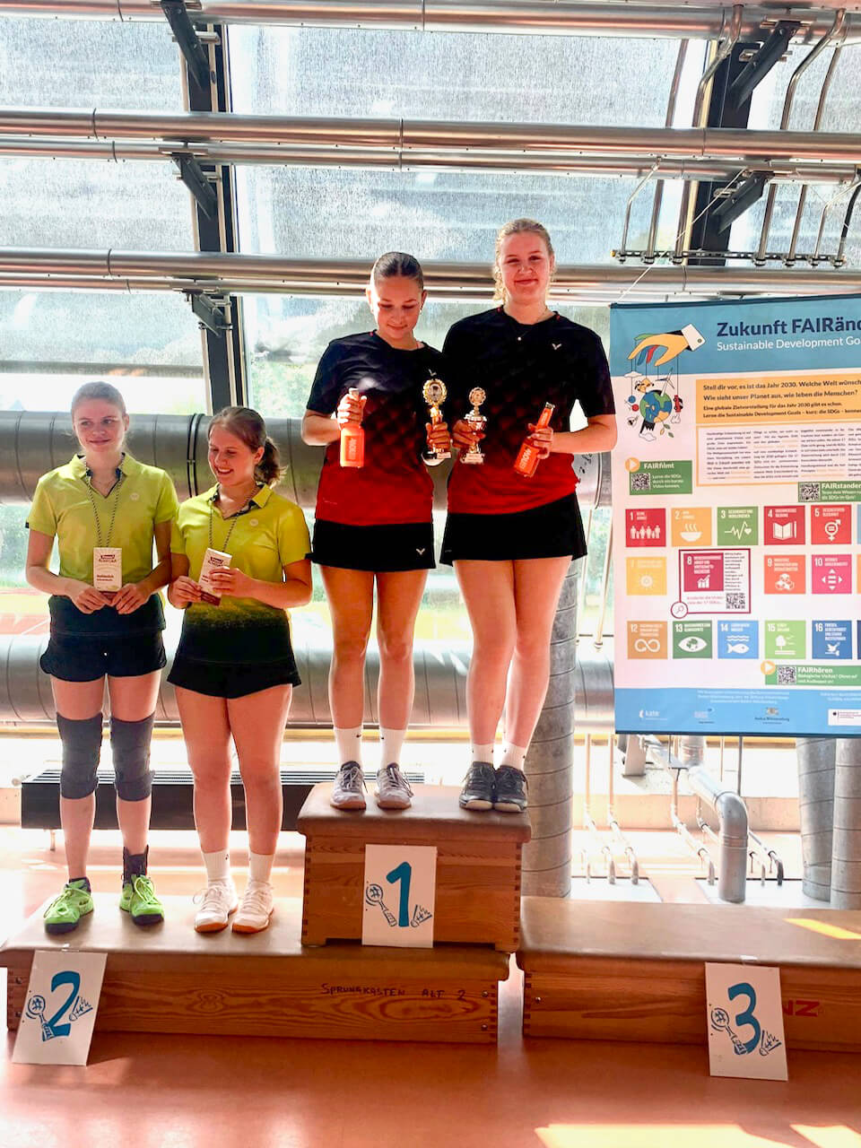 | MD U15 1 Alessia Croll (TSG Heilbronn) / Lucia Schirrmeister (SSV Waghäusel) 2 Sarah Hänßler (BC Spöck) / Jin Liu (BSV Eggenstein-Leopoldshafen) | ME U17 1 Ida Lauer (BV Rastatt) 2 Lucija Dujic (TSG Heilbronn) 3/4 Lucy Freigang (DJK/Fortuna Edingen-Neckarhausen) 3/4 Karolin Veres (BV Rastatt) |
