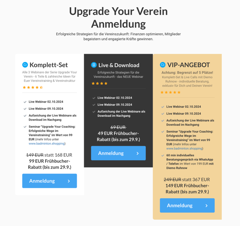 Sonderangebot – Gesamtpaket zum Vorteilspreis – Drei Webinare zum Sonderpreis: Upgrade Your Badminton: Erfolgreiche Wege im Vereinstraining – Das Seminar PLUS Das neue Webinar „Erfolgreiche Strategien für die Vereinszukunft“