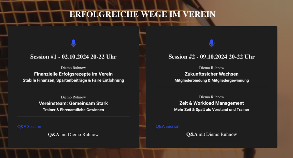 Diese Webinarreihe und das exklusive Seminar-Gesamtpaket bieten Ihnen und Ihrem Verein wertvolle Einblicke und praxisnahe Ansätze, um das Vereinsleben nachhaltig und erfolgreich zu gestalten.