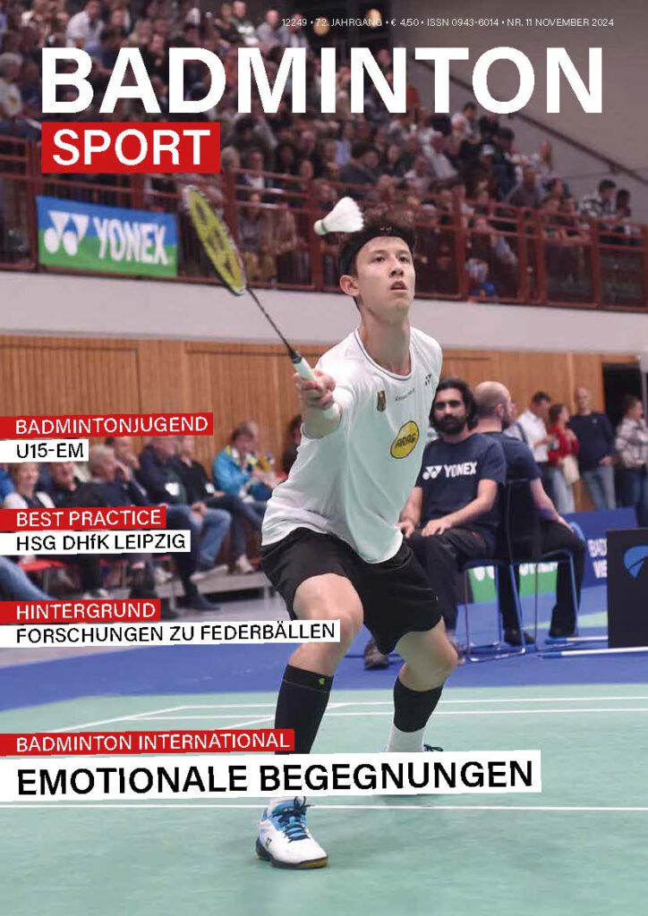 In der Ausgabe 11/2024 von BADMINTON SPORT (BS) geht es ebenfalls um die Olympischen und die Paralympischen Spiele in Paris – im Rahmen eines Hintergrundartikels zum „Deutschen Haus“ und seiner Fan Zone. Darüber hinaus finden sich im November-Heft u. a. ein umfangreicher Nachbericht zu den Freundschaftsländerspielen der deutschen Nationalmannschaft gegen die Tschechische Republik, ein Beitrag zu – sogar ausgezeichneten – Forschungen zum Flugverhalten von Federbällen und Vorschauen auf mehrere Topevents, die in den kommenden Monaten stattfinden.