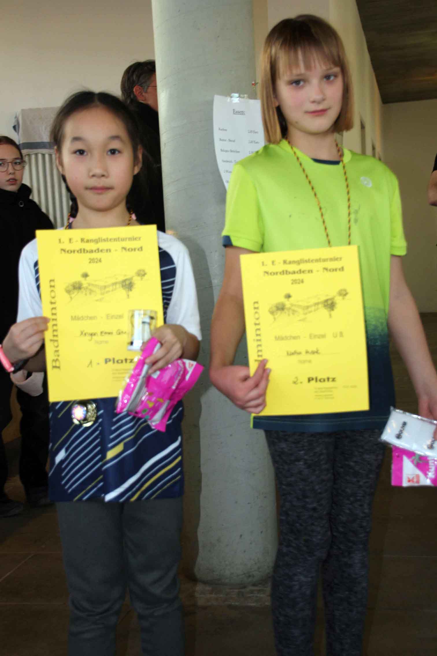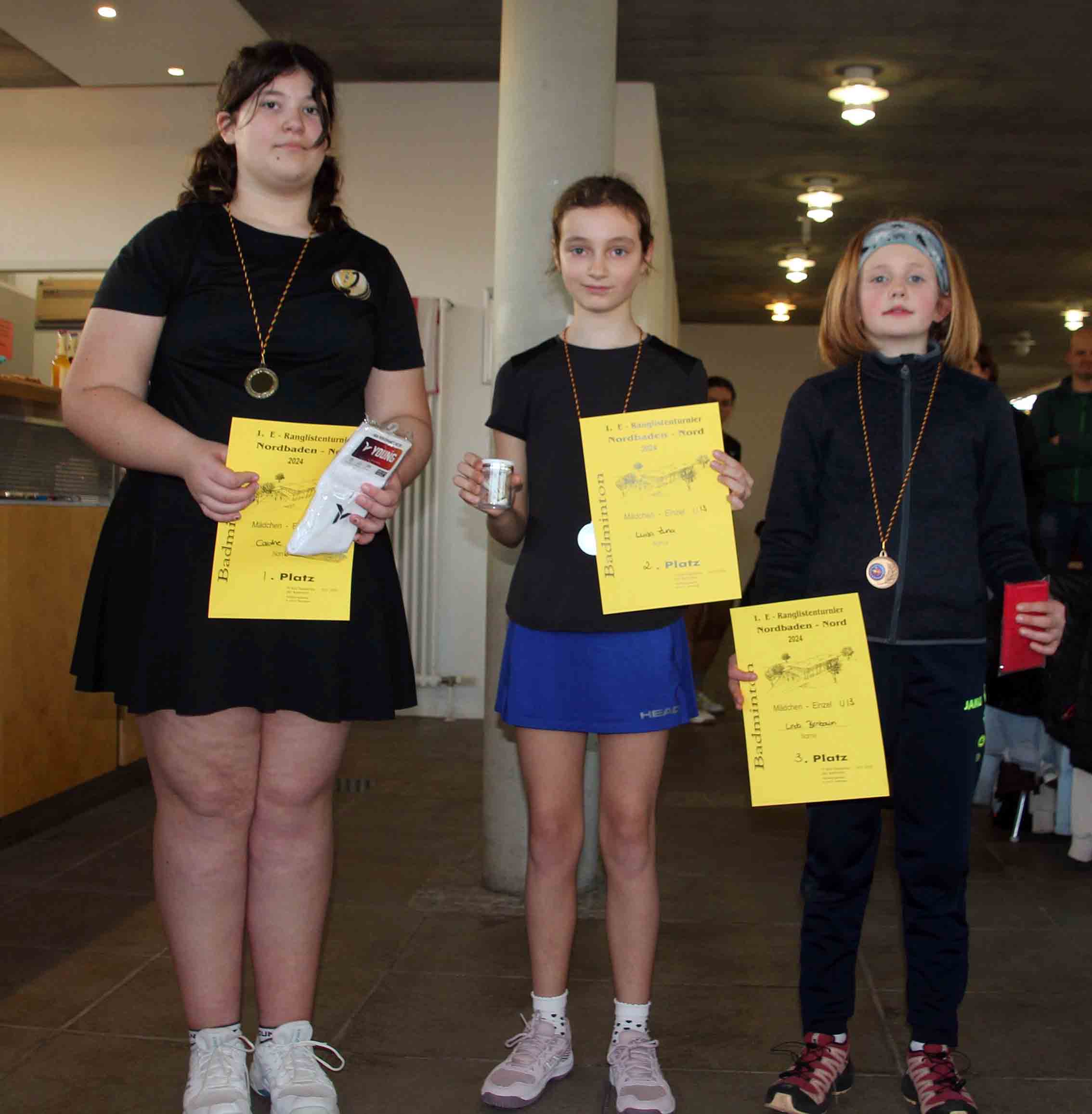 | ME U11/13 (2/3 Spielerinnen) Carolin Keller, TSV Neuhengstett Luisa Zuna, TSG Dossenheim Linda Birnbaum, TV Bad Rappenau Xinyan Emmi Qiu, SSV Waghäusel (U11) Nadiia Husak, TSG Weinheim (U11) | ![]() |