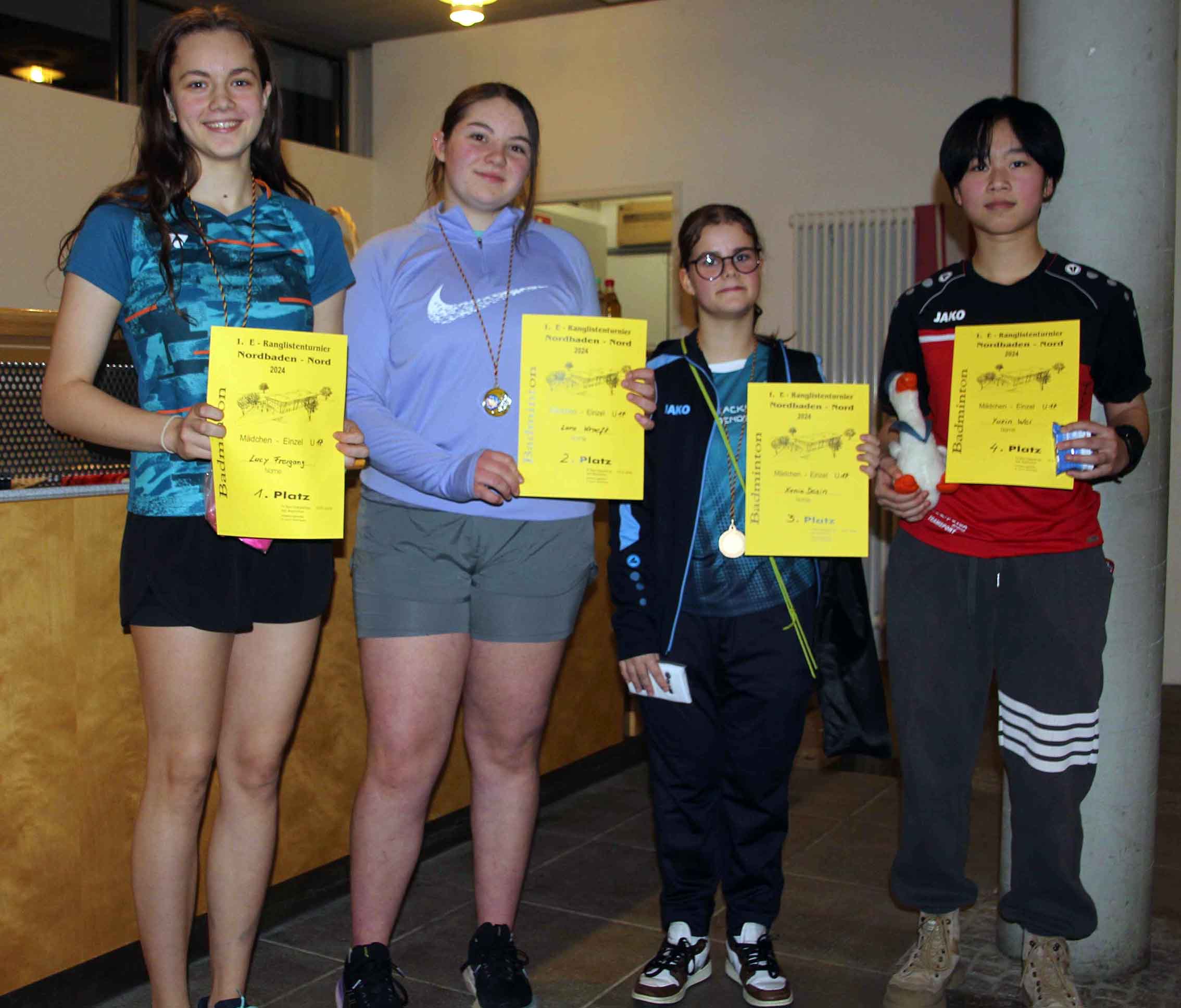 | ME U17 (5 Spielerinnen) Lucy Freigang, DJK Fortuna Edingen-Neckarhausen Lara Kraeft, TV Singen Xenia Desin, SSV Waghäusel Yuxin Wei, TSV Tauberbischofsheim | ![]() |