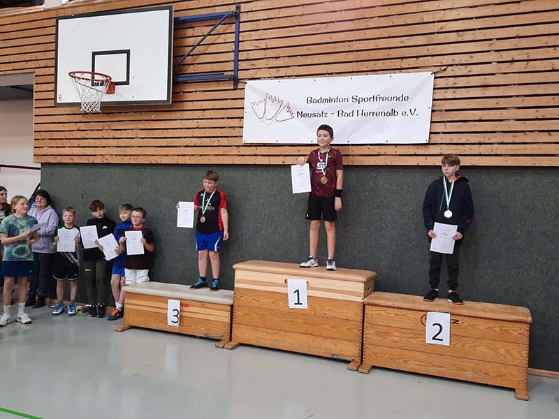 Einen beeindruckenden Turnierstart legte Julian Röhrnbacher vom Ausrichter BSpfr. hin. Bei seiner Turnierpremiere belegte er nach nur einer Niederlage Platz 4 bei den Jungen U11. Den Sieg holte sich Favorit Felix Rodrian (TB Sinzheim). Bei den Jungen U13 gelang Thorin Schäfer (TuS Bietigheim) der Sieg über den Toplatzierten Jan Rodrian. Im Finale musste er sich allerdings Lionel Gärtner vom BV Rastatt geschlagen geben. Hans Sagemüller gewann das Spiel um Platz 3 gegen seinen Vereinskameraden Julian Rau (beide BSpfr. Neusatz-Bad Herrenalb). Im Jungeneinzel U15 gewann Tim Müller (TB Sinzheim) sehr souverän alle Spiele, auch das Finale gegen Vicent Sommerauer (SG Hemsbach). Mit Lukas Hänßler (BC Spöck) setzte sich einer der Favoriten bei den Jungen U17 durch. Das spannendste Spiel des Tages lieferten sich Tanmay Erappa Naduvattira (SSV Waghäusel) und Noah Bauer (BV Rastatt) im Jungeneinzel U19. Nach drei hart umkämpften Sätzen, wobei Satz 2 und 3 in die Verlängerungen gingen, durfte Noah Bauer über den Turniersieg jubeln.